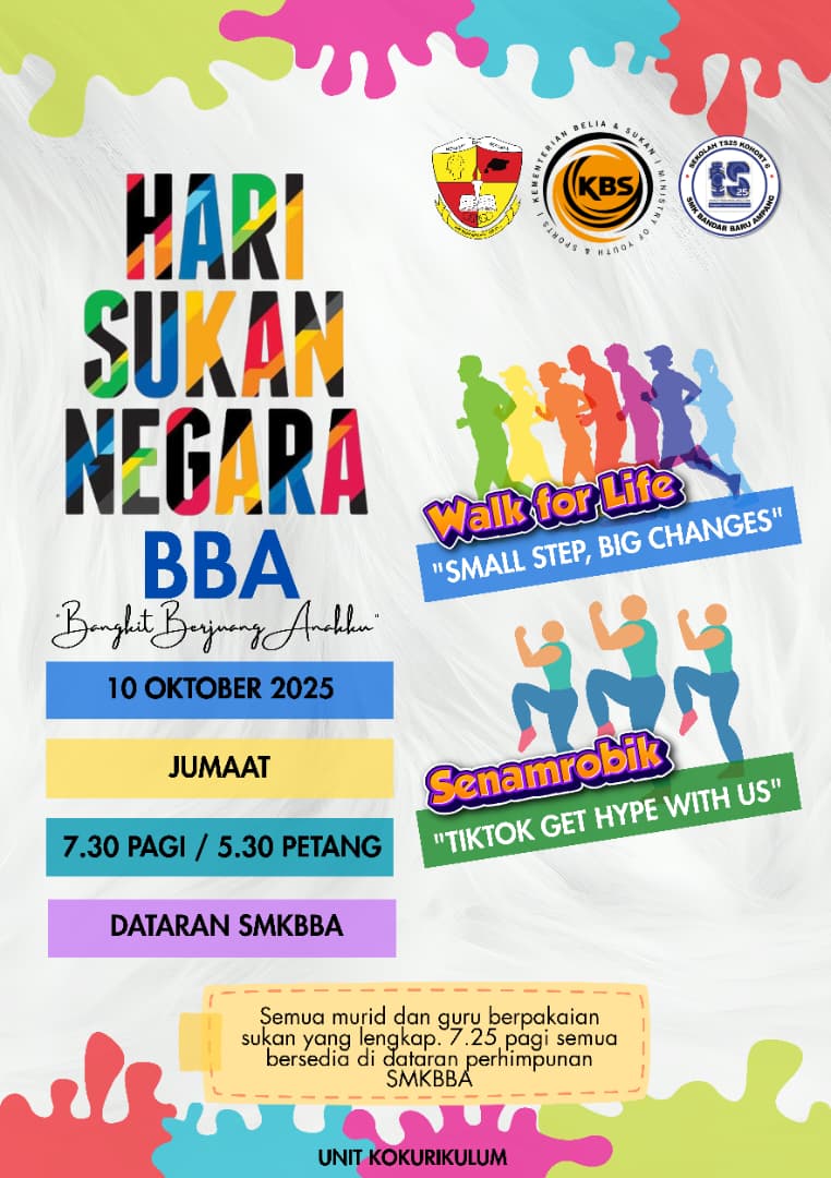 AKTIVITI SENAMROBIK HARI SUKAN NEGARA PERINGKAT SEKOLAH DIADAKAN BAGI MENINGKATKAN KECERGASAN , SEMANGAT KERJASAMA DAN KECERIAAN WARGA SEKOLAH. SEMUA MURID DAN GURU DIGALAKKAN MENYERTAI BAGI MEMBUDAYAKAN GAYA HIDUP SIHAT MELALUI AKTIVITI FIZIKAL YANG MENYERONOKKAN