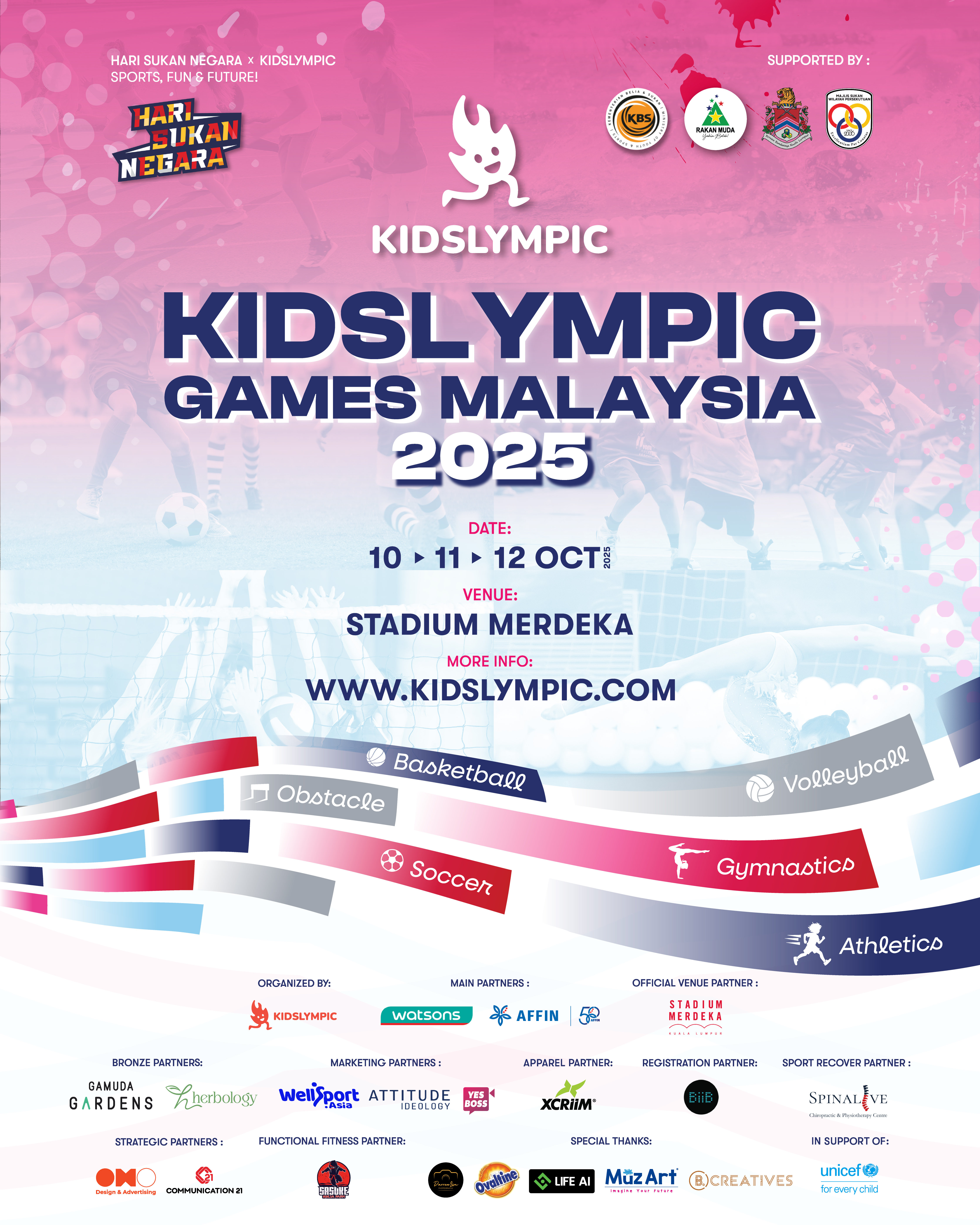 More than just games, Kidslympic Games Malaysia is a movement to empower children to live active lifestyles, develop confidence, and dream of greater sporting achievements — all while having fun and embracing the true spirit of Sport.