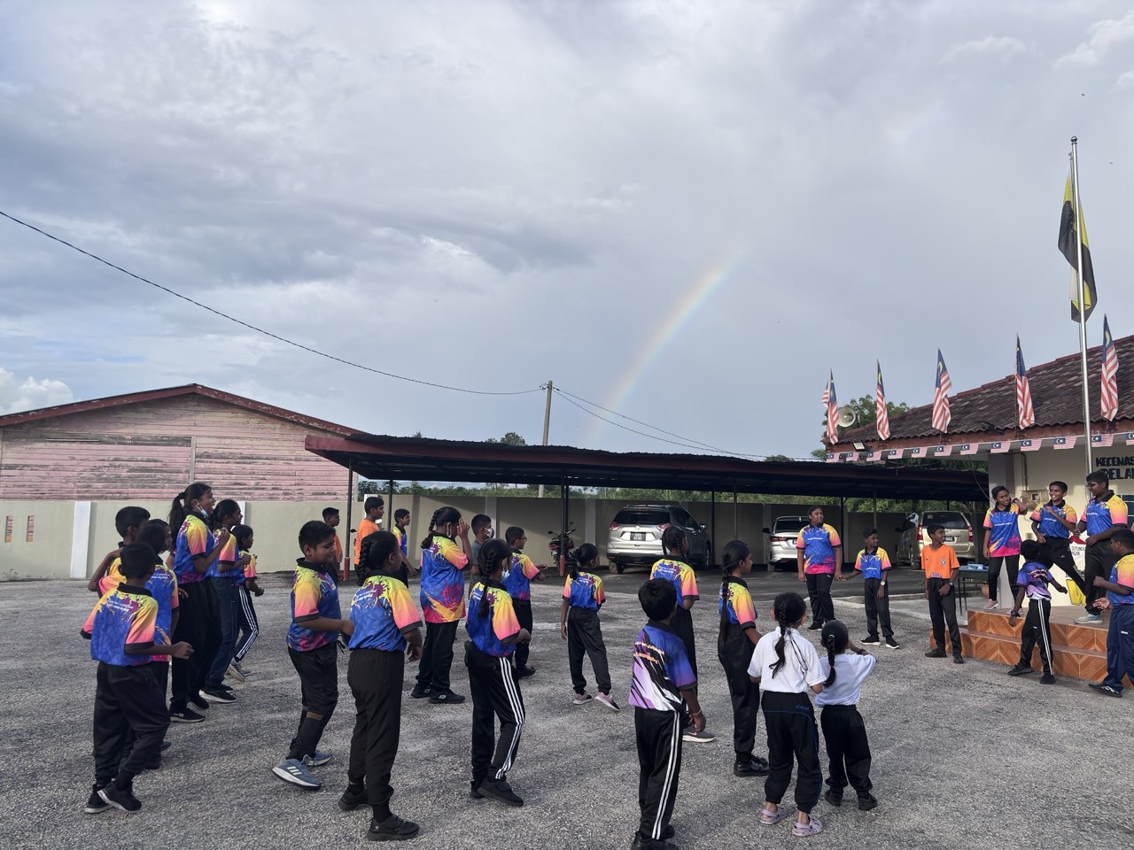 Berkumpul di tapak perhimpunan Membuat senaman ringkas Tarian Bersurai