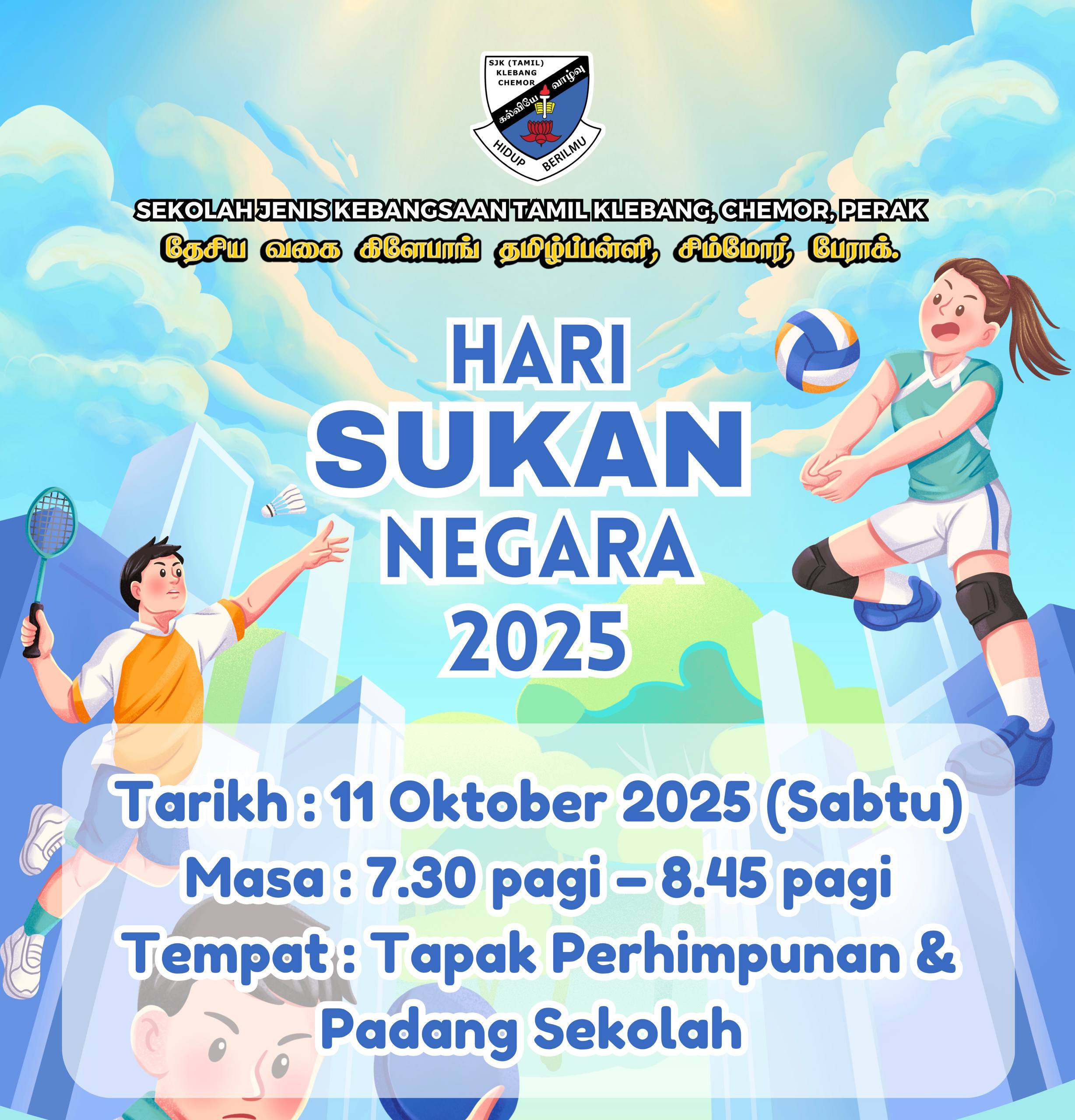 Program Hari Sukan Negara Peringkat Sekolah Tahun 2025 telah dilaksanakan di Sekolah Jenis Kebangsaan (Tamil) Klebang pada 11 Oktober 2025. Program ini bertujuan meningkatkan kesedaran tentang kepentingan gaya hidup sihat serta menggalakkan penyertaan aktif murid dalam aktiviti fizikal dan rekreasi. Aktiviti bermula dengan senamrobik perdana diikuti permainan sembilan stesen yang melibatkan semua murid Tahun 1 hingga Tahun 6. Program berjalan dengan lancar dan mendapat sambutan baik daripada warga sekolah. Antara penambahbaikan yang dicadangkan ialah penyusunan jadual lebih awal dan penambahan sukarelawan serta peralatan sukan bagi kelancaran aktiviti pada masa akan datang.