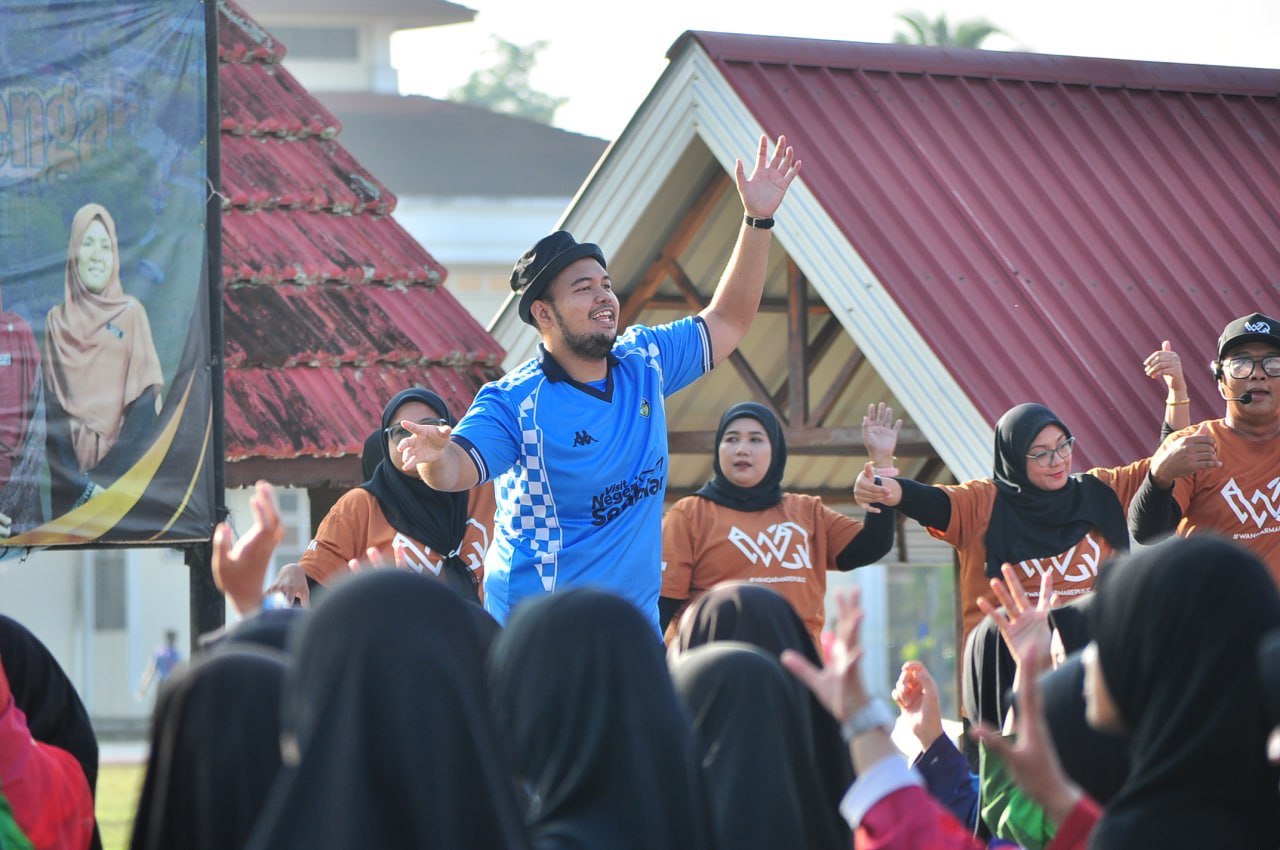 Senamrobik Perdana: Sesi memanaskan badan dan senaman beramai-ramai yang diketuai oleh Instruktor Senamrobik