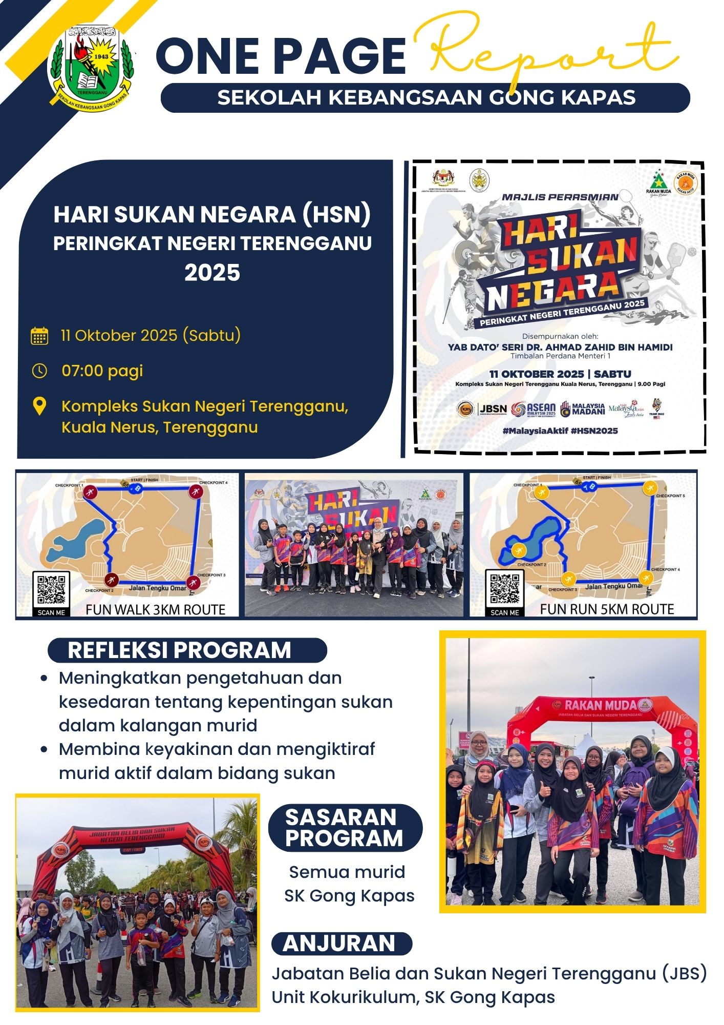 HARI SUKAN NEGARA HARI SUKAN NEGARA 2025 Jom bersukanšŸ¤“!!! Hari Sukan Negara kembali lagi!šŸ”„ Mari kita semarakkan gaya hidup sihat & aktif untuk diri, keluarga dan Negara. HSN 2025 kali ini menawarkan pelbagai aktiviti bersukan secara PERCUMA. Murid-murid yang berminat menyertai HSN 2025 boleh hadir bersama ibu bapa dan keluarga mengikut ketetapan berikut : Tarikh - 11 Oktober 2025 Hari - Sabtu Tempat - Kompleks Sukan Negeri Terengganu, Kuala Nerus Masa berkumpul - 6:50 pagi Pengangkutan - Ibu bapa Pakaian - T-shirt Oren SekapasĀ  Ā  Sebarang pertanyaan dan maklumat lanjut, sila hubungi :Ā  Penyelaras HSN Sekapas 2025, Cikgu Hufaidah binti Mohamad (010-4569945)